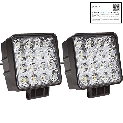 if you want to know information about 2 Pcs LED Flood Light,JACKYLED Work Light Bar Driving Fog Lamp 48W 4.2'' 100% Epistar Chips 60 Degree 6000K For Offroad Tractor Marine RV ATV CARS SUV Jeep Boat 4WD 4x4(Square) , you are right in our page because this time I will talk about about this Spot Lights Spec. . . it product is top for you, because they are designed to provide better quality .
